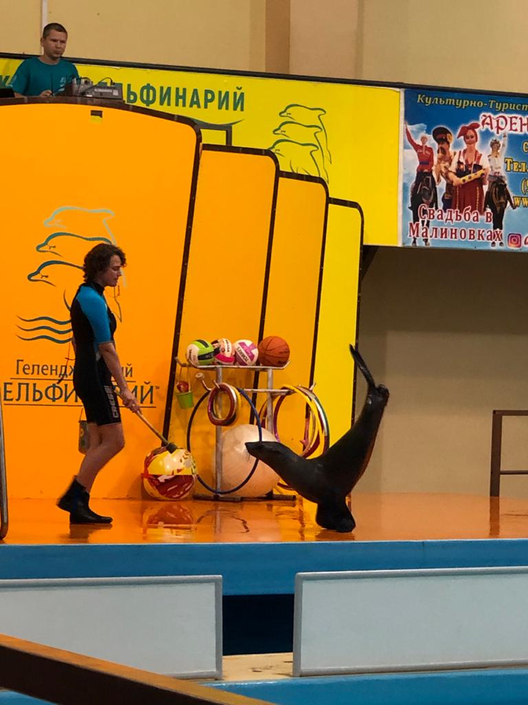 Так на днях мы решили организовать коллективную поездку отдыхающих в Геленджикский дельфинарий, тем более испортившаяся погода какой-либо альтернативы не предоставила.