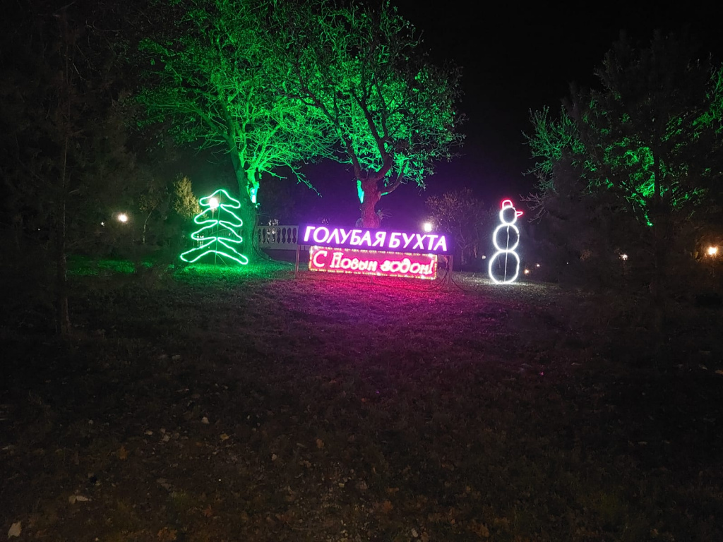 Уже сейчас, гуляя по территории санатория «Голубая бухта», можно насладиться сказочной атмосферой и внести яркие моменты в повседневную жизнь. Остановиться, полюбоваться, а также сфотографироваться с новыми световыми конструкциями снеговика и сказочных оленей. Иллюминация и игра огней на территории санатория дарят ощущение магии праздника и торжества.