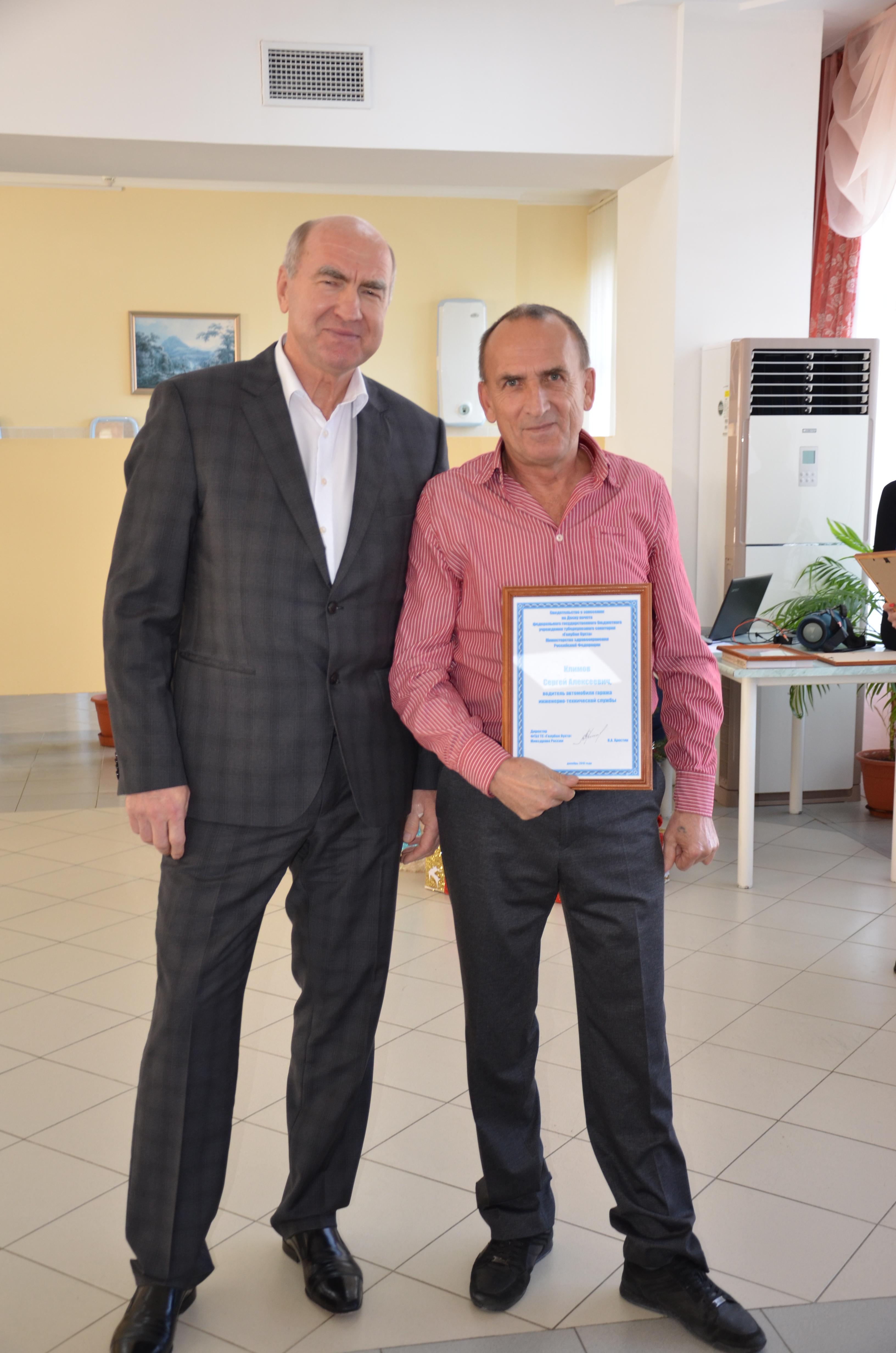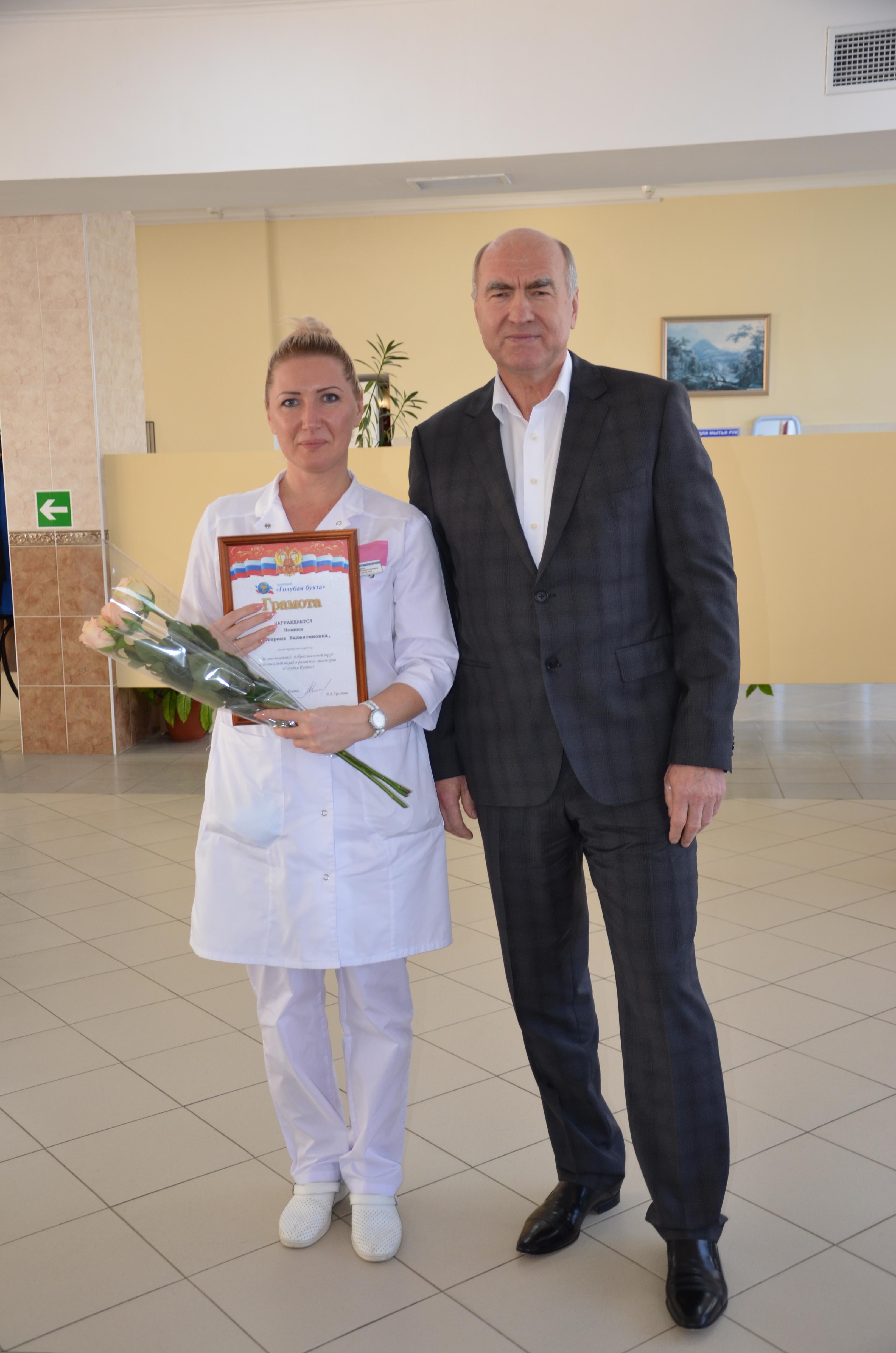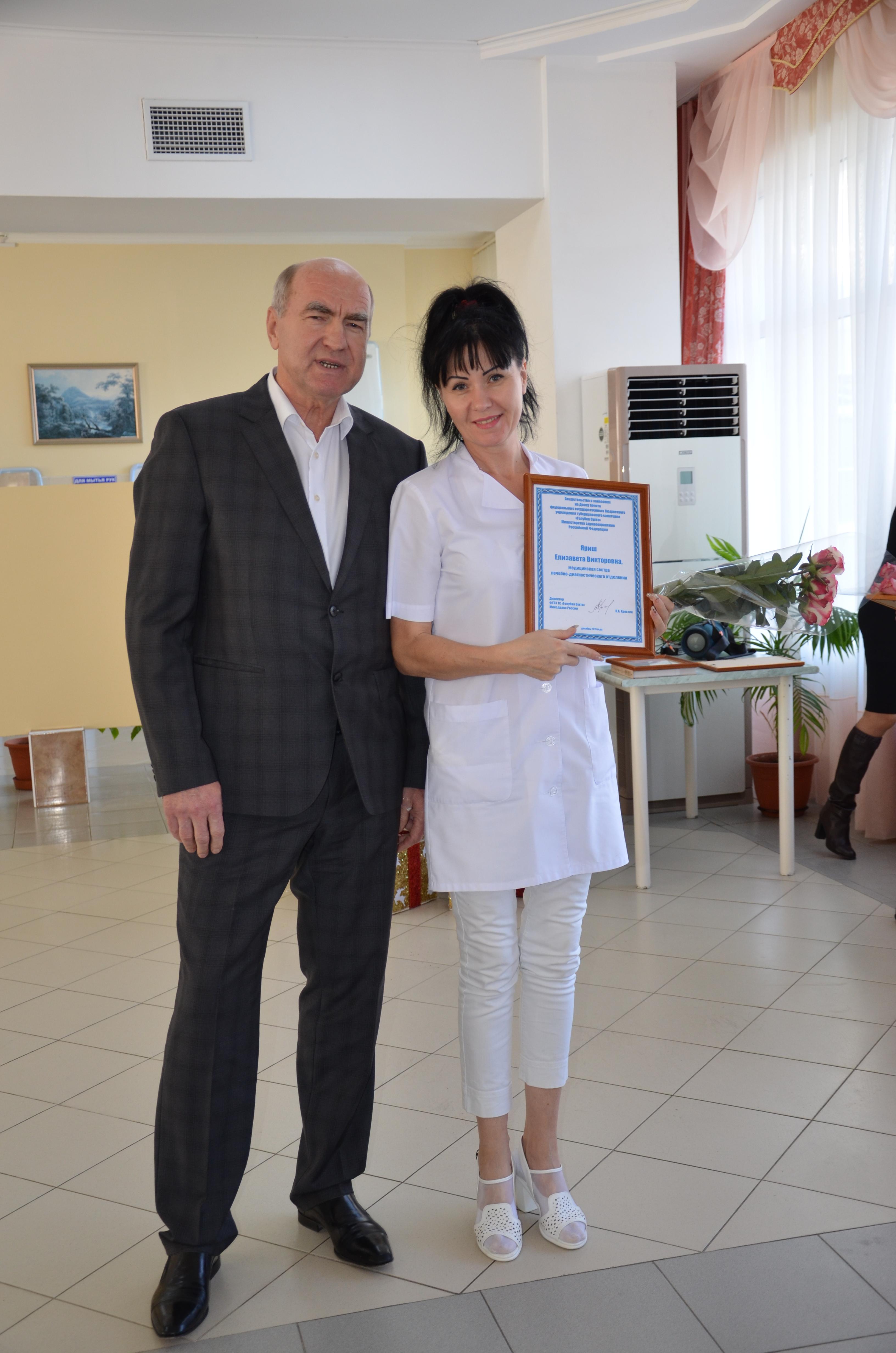 Особо отличившиеся сотрудники санатория были занесены на Доску почета. Это врач-уролог Виктор Казеко, медсестры Елизавета Яриш и Наталья Гончарова, администратор Татьяна Щербакова, водитель автобуса Сергей Климов, кастелянша Наталья Денко, уборщики Валентина Осыка и Татьяна Балашова, машинист по стирке Людмила Гусева, кухрабочий пищеблока Ирина Кшеминь.