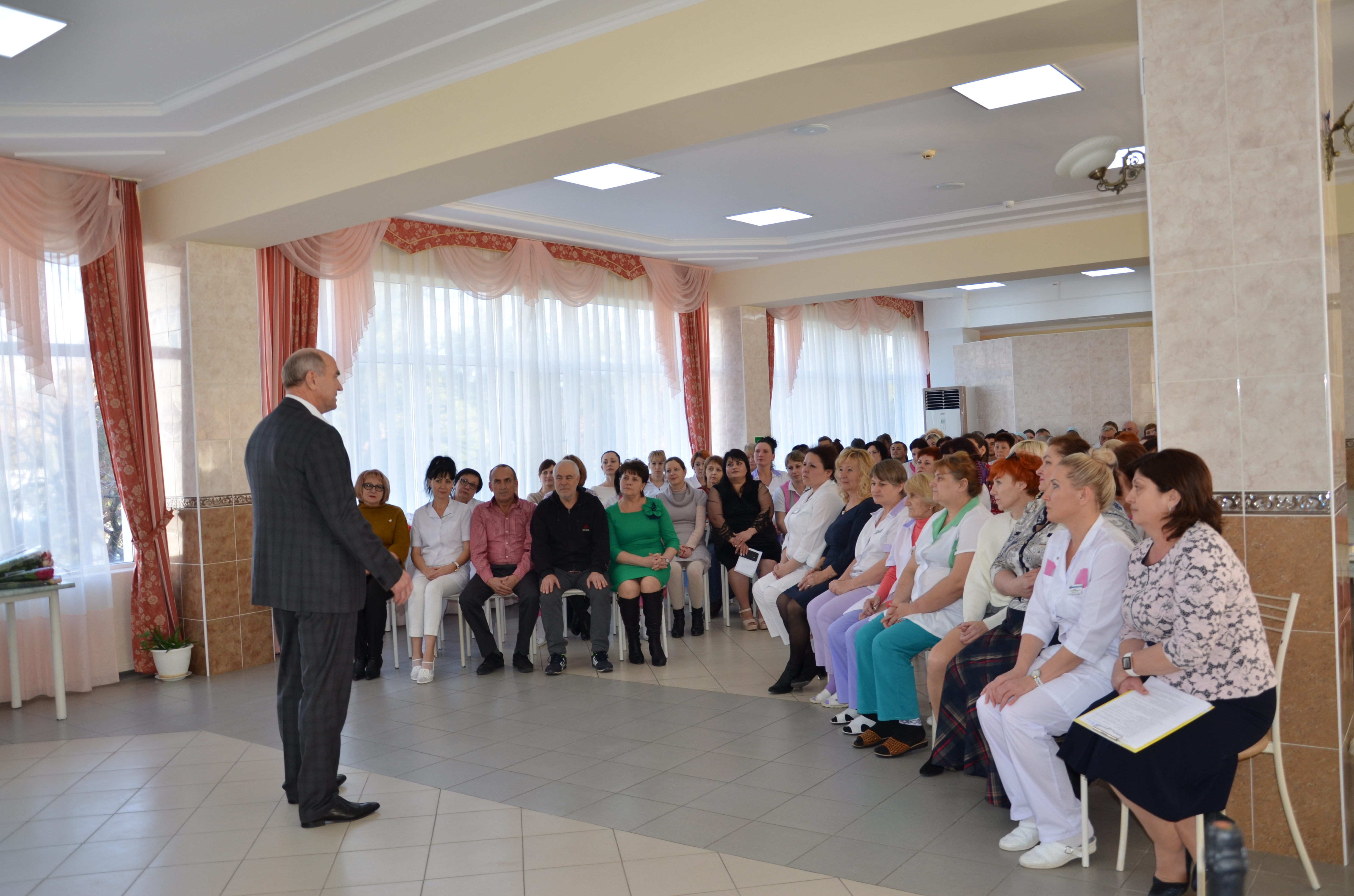 На торжественном собрании коллектива директор Виктор Хрестин подвел итоги 2019 года. В уходящем году санаторий успешно справился с государственным заданием, было много сделано по преображению территории и внутренних помещений, внедрены новые методики лечения. По словам директора, это стало возможным благодаря слаженной и продуктивной работе всего коллектива.