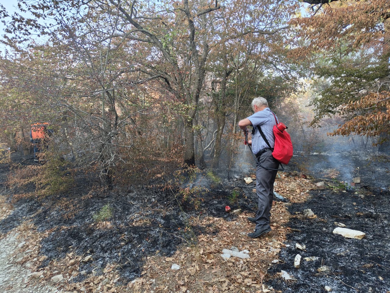 И вроде бы уже прошло жаркое летнее время, и на дворе золотая осень, однако пожароопасная обстановка продолжает сохраняться. Сегодня, в районе 6.20 утра, было зафиксировано очередное возгорание лесного массива в микрорайоне Голубая бухта, вблизи санатория. Оперативно на тушение пожара в помощь сотрудникам лесопожарного центра были мобилизованы сотрудники санатория, которые приняли исчерпывающий комплекс противопожарных мер, что позволило в достаточно короткие сроки локализовать площадь возгорания и не дать огню перекинуться на жилые домовладения.