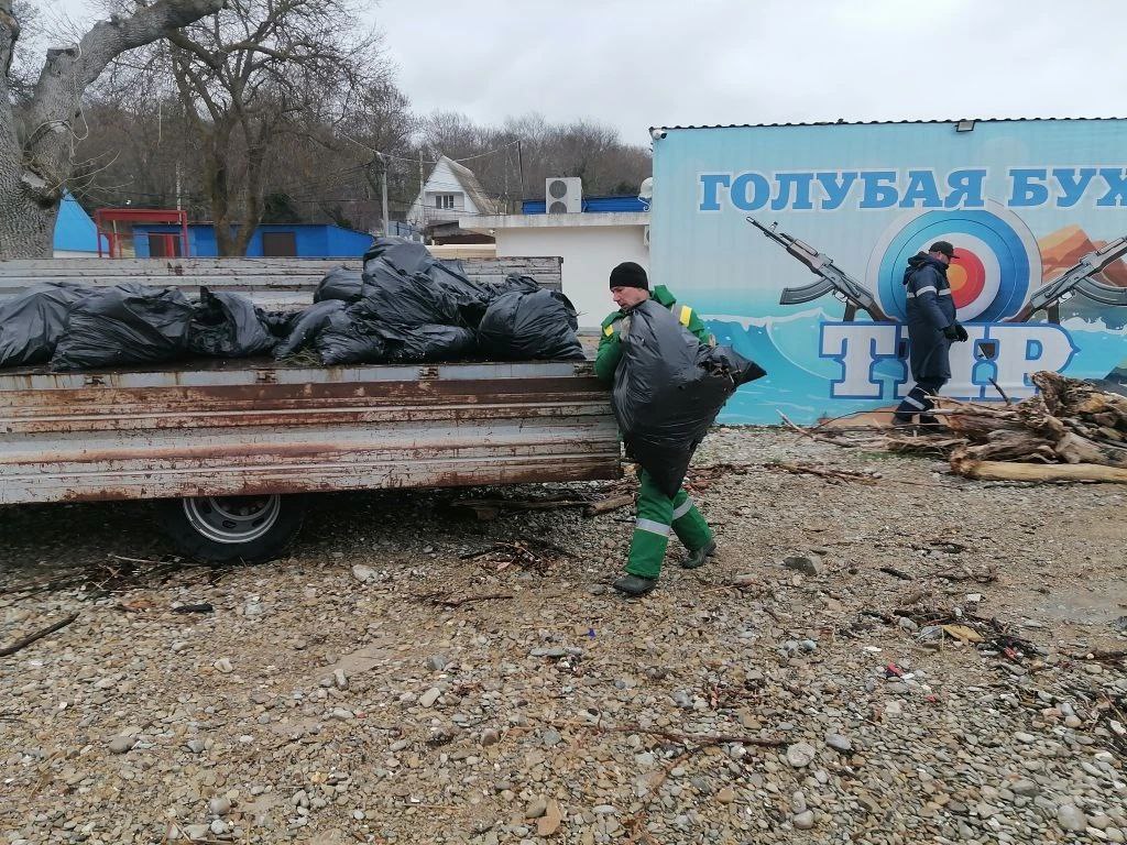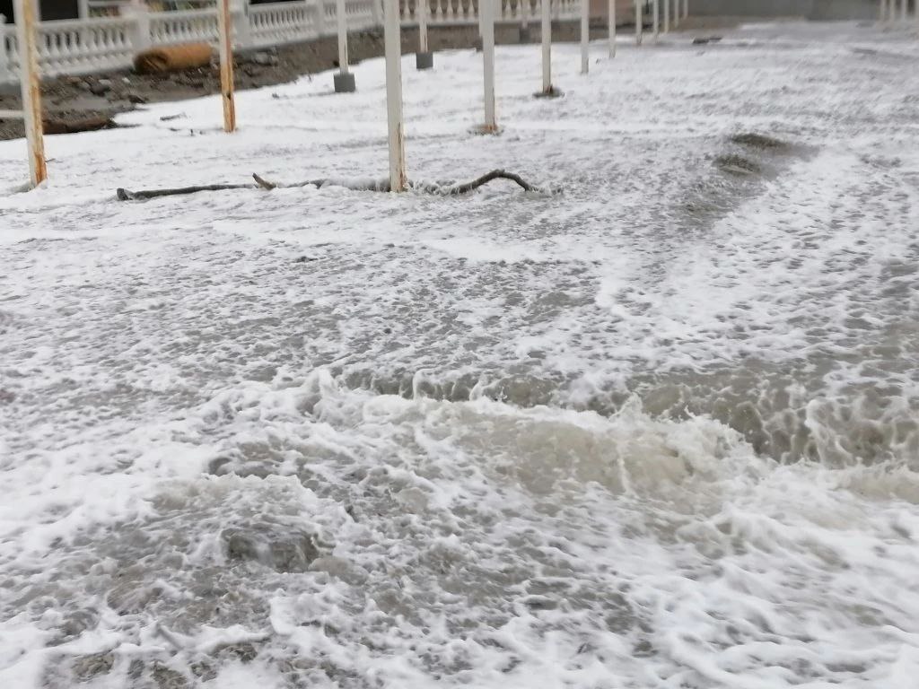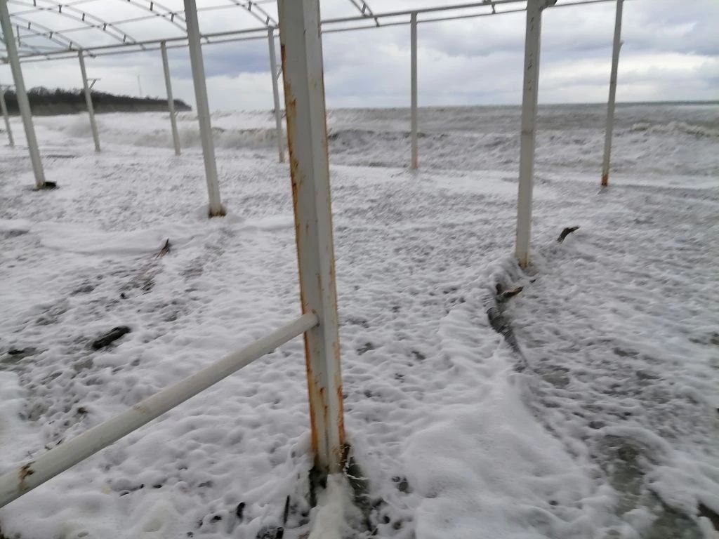 Обрушившийся на берег шторм нанес существенный ущерб пляжной территории санатория. На берег вынесло большое количество природного и бытового мусора.