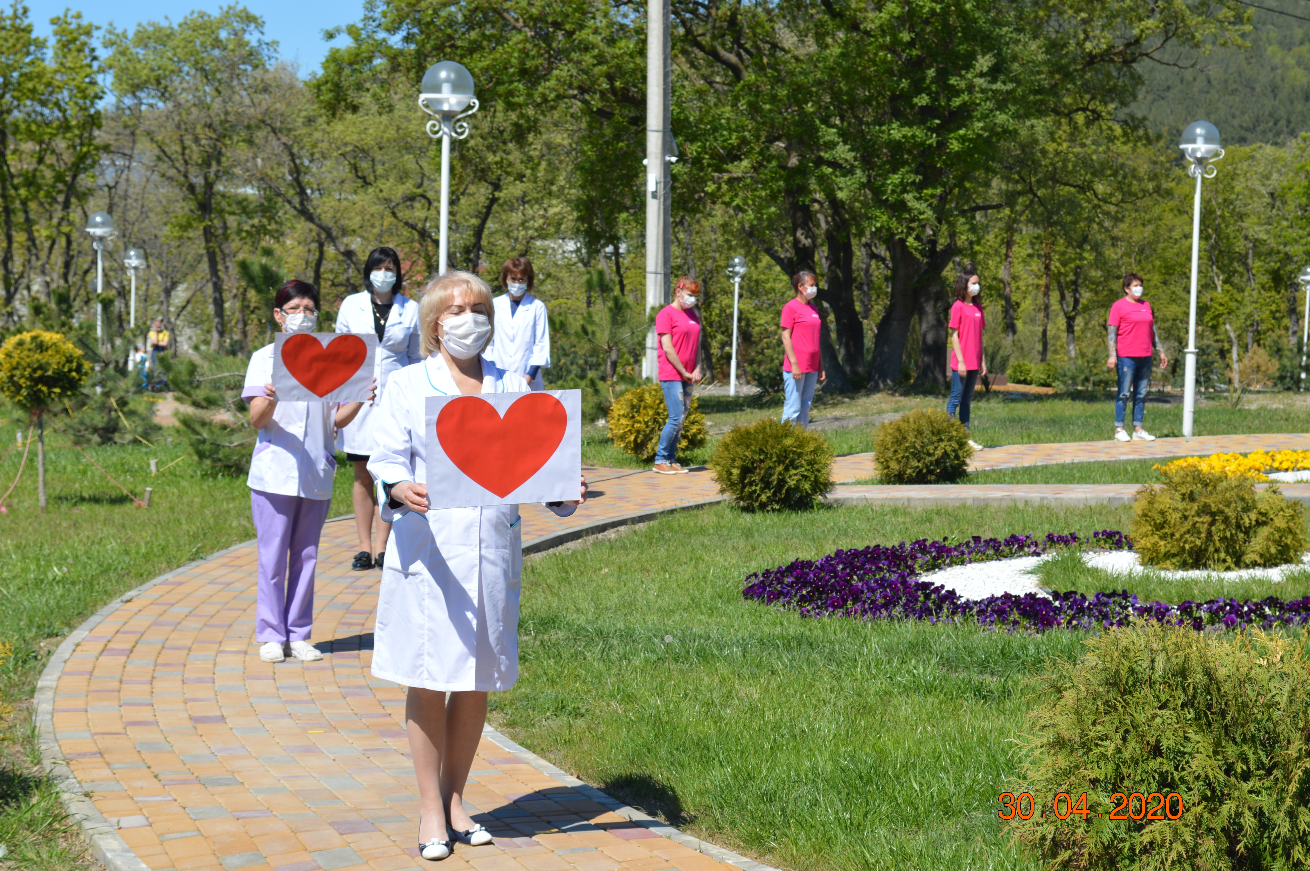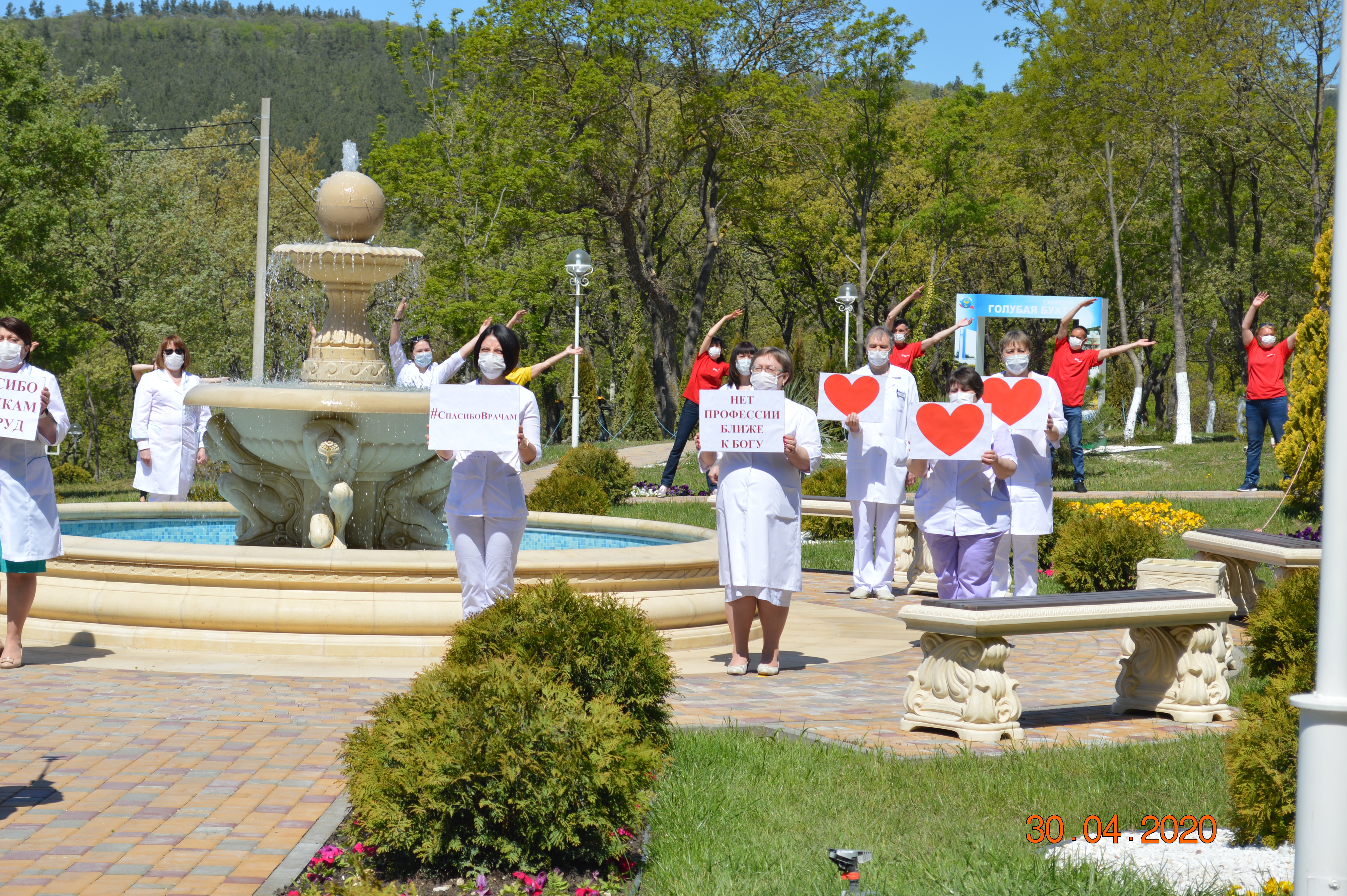 Сегодня сотрудники и пациенты санатория, объединившись в одну творческую команду, в преддверие Праздника Весны и Труда, решили музыкальным флешмобом высказать слова благодарности и признательности медицинским работникам, которые вступили в неравный бой с невидимым противником под названием «коронавирусная инфекция».