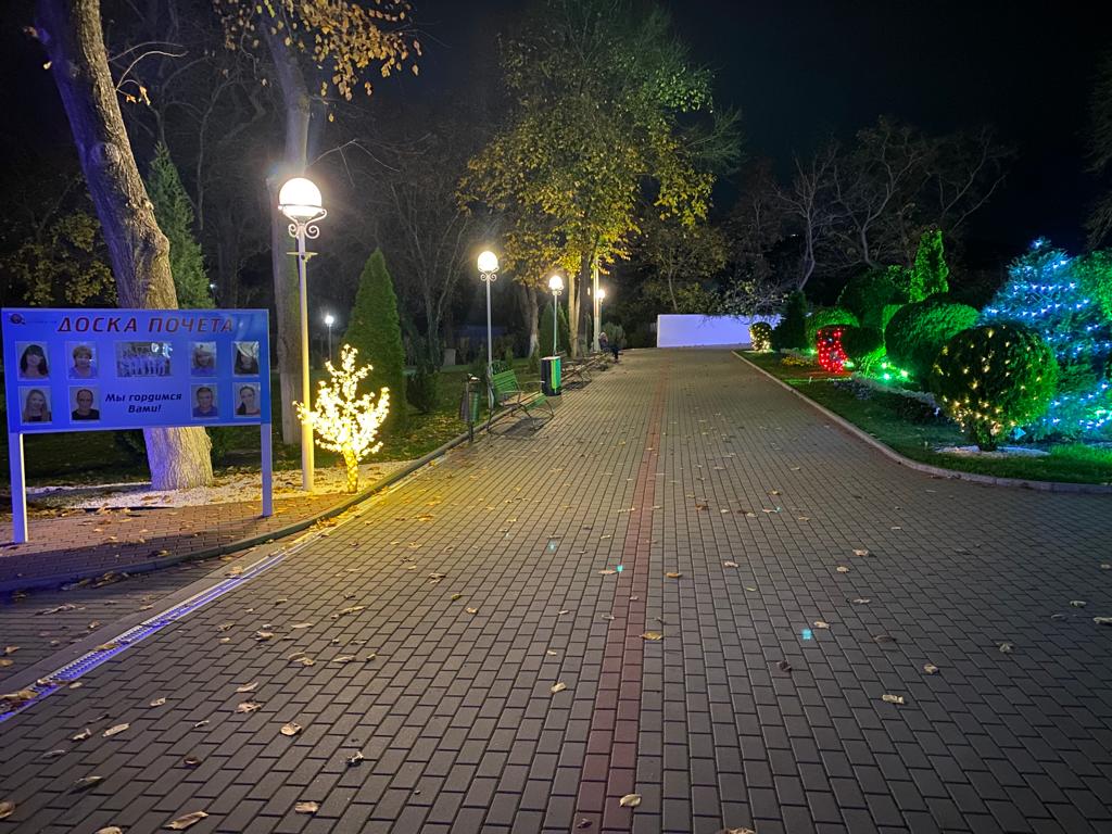 При планировании дальнейшего развития руководство санатория одной из главных для себя целей видит создание комфортных условий для получения медицинской помощи, проживания и питания, а также нахождения на территории санатория для наших гостей. Вечерний облик санатория не оставляет равнодушными любителей прогулок на свежем морском воздухе. Парковые светильники излучают тепло, оригинальная подсветка поднимает настроения, а спокойная музыка, которая играет на территории всего санатория, успокаивает и позволяет насладиться поистине прекрасным климатом нашего курортного города.