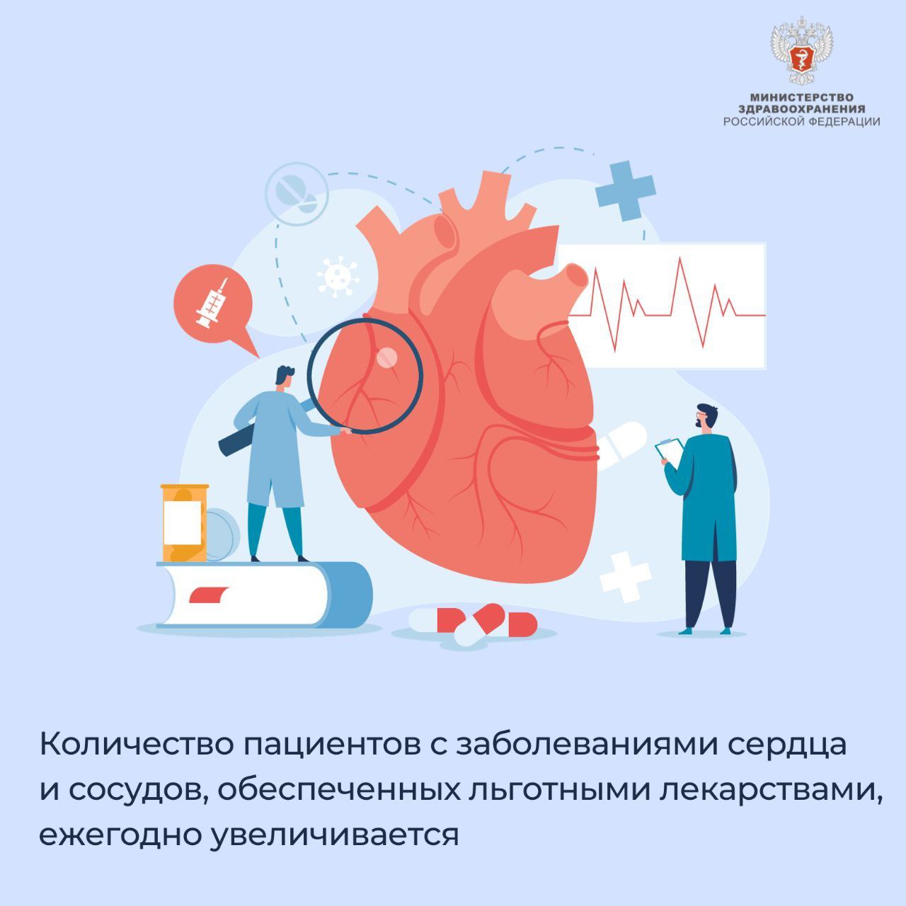Количество пациентов, получивших бесплатные лекарства после перенесенного инфаркта, инсульта или после перенесенной сердечно-сосудистой операции, а также доля тех, кто получает лекарства, от общего числа пациентов с болезнями сердца и сосудов, ежегодно увеличивается.