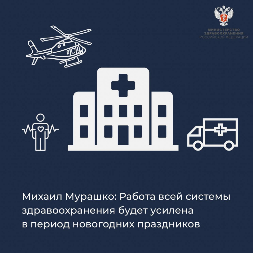 — В период длинных новогодних и рождественских каникул работа всей системы здравоохранения должна быть усилена, а граждане должны иметь возможность получать качественную медицинскую помощь, вовремя получать назначенные им лекарственные препараты, — сказал министр здравоохранения РФ Михаил Мурашко на оперативном совещании с заместителями.