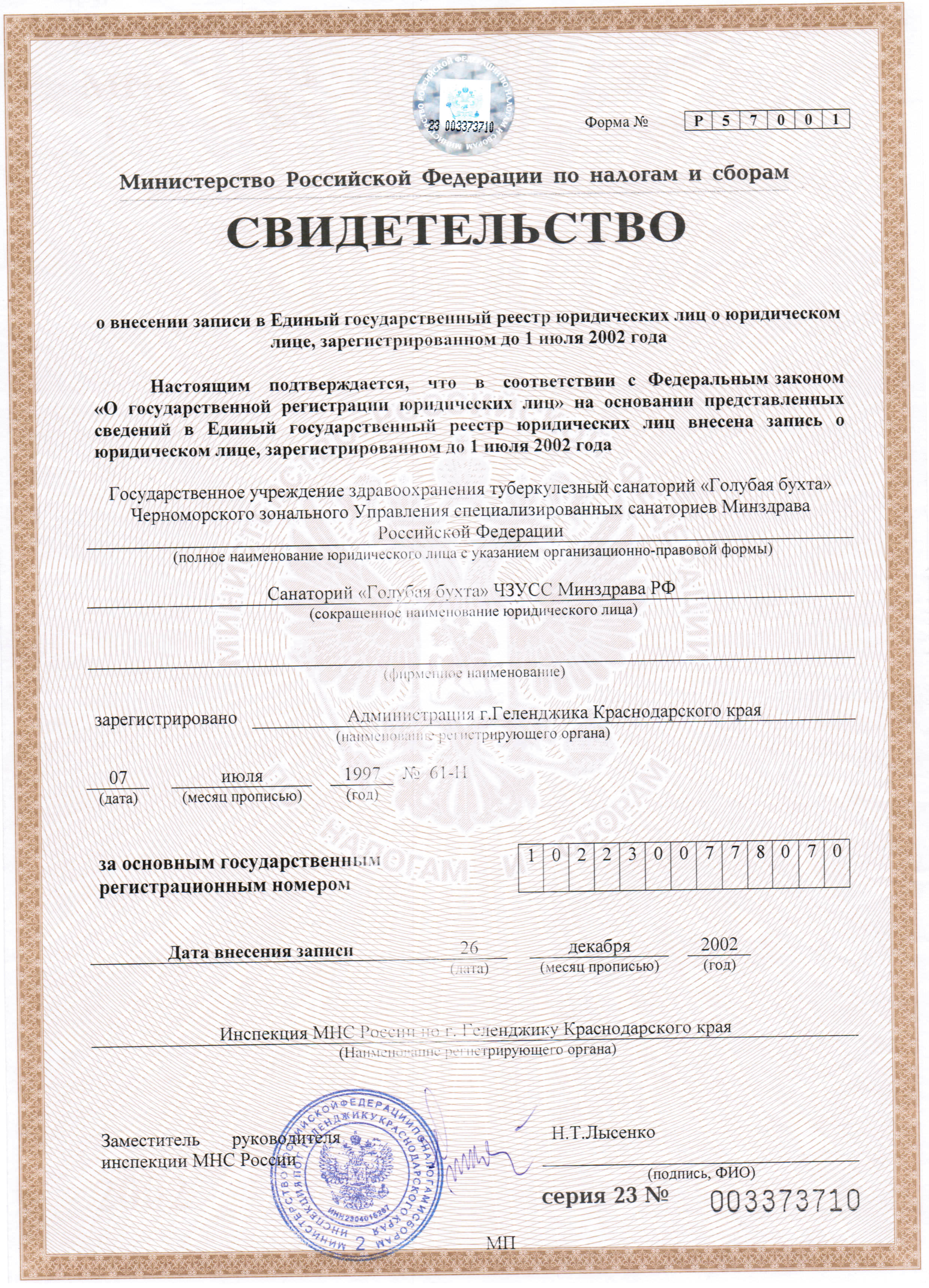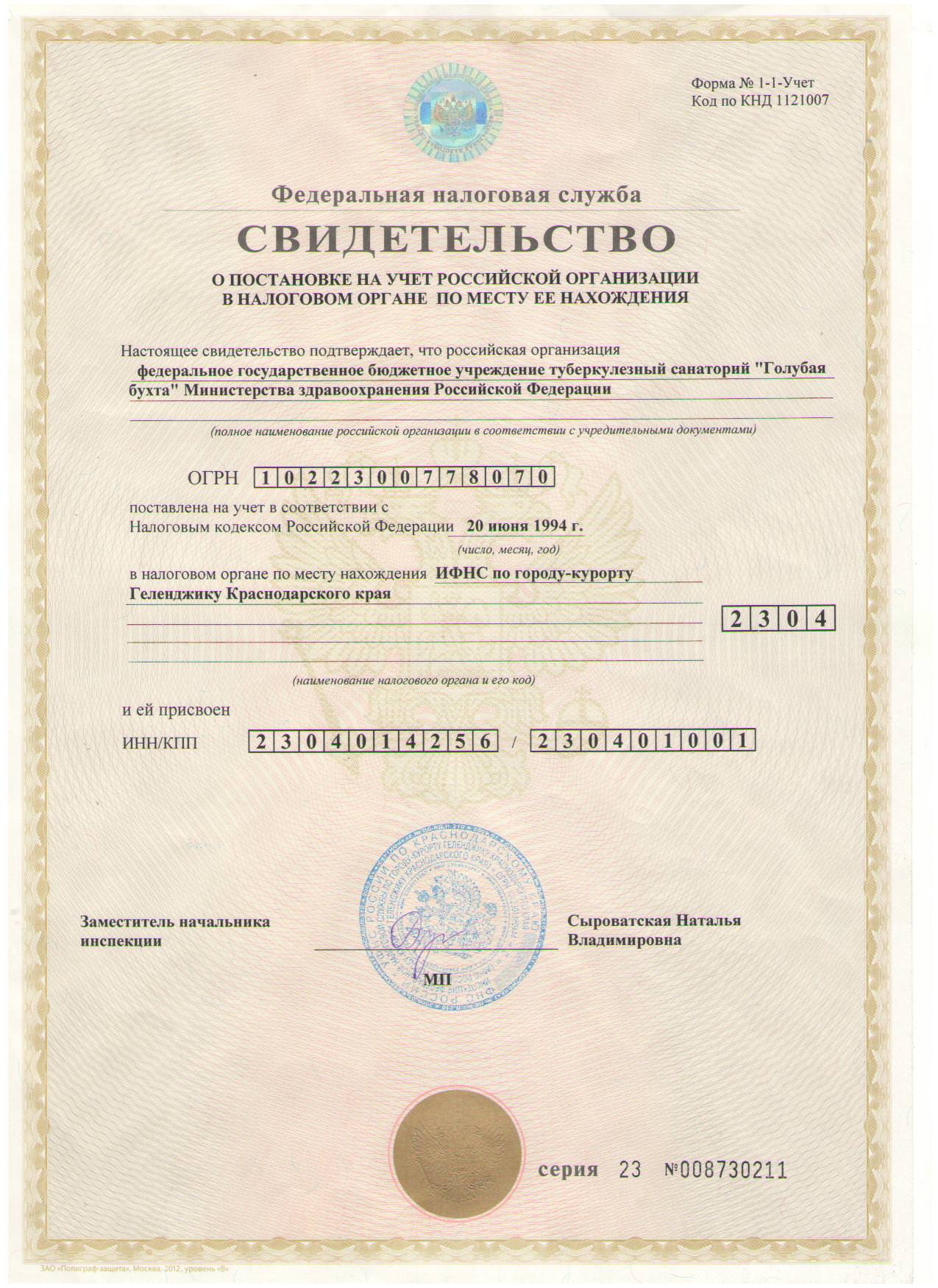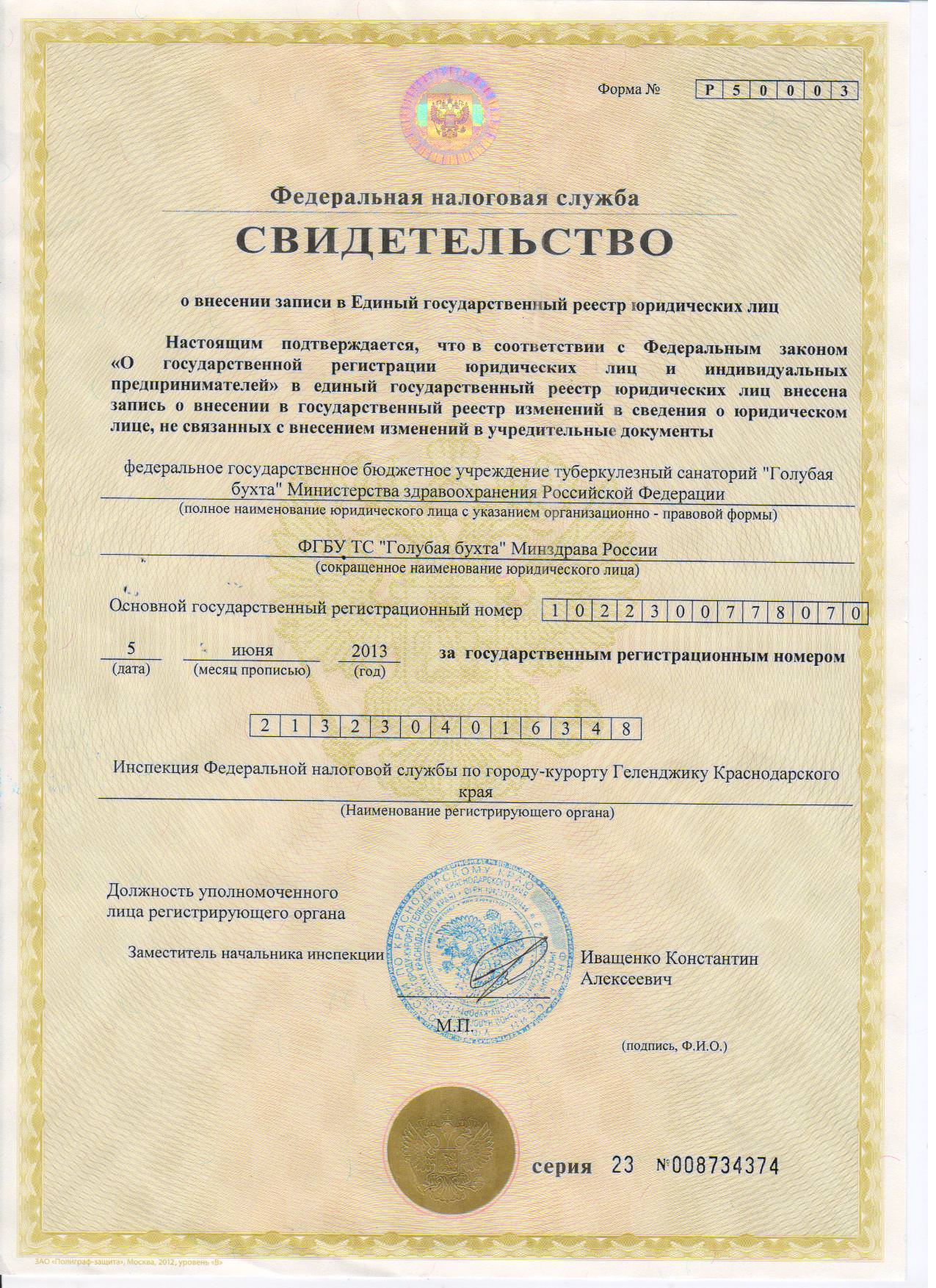 Правовые документы ФГБУ ТС «Голубая бухта» Минздрава России