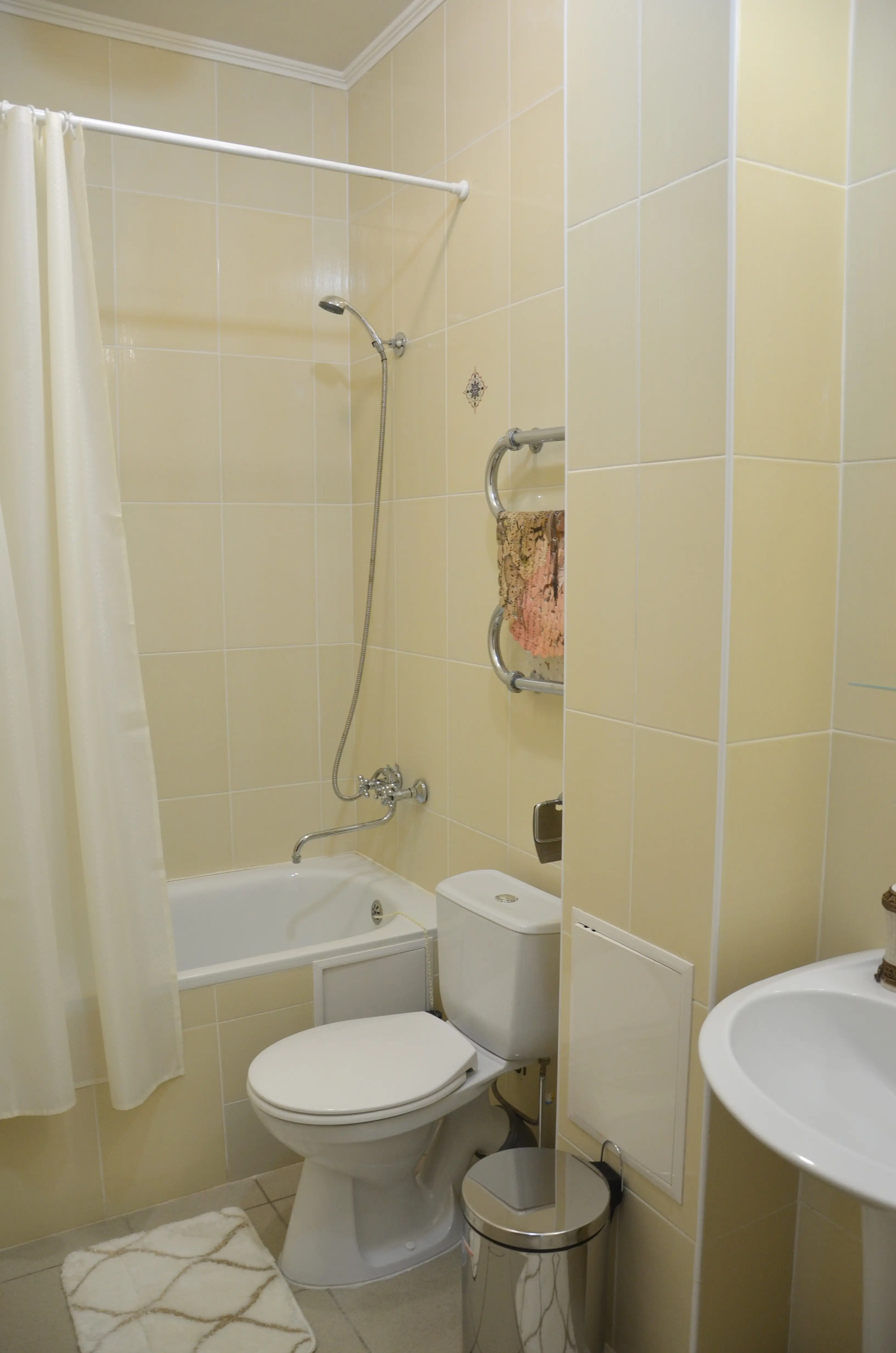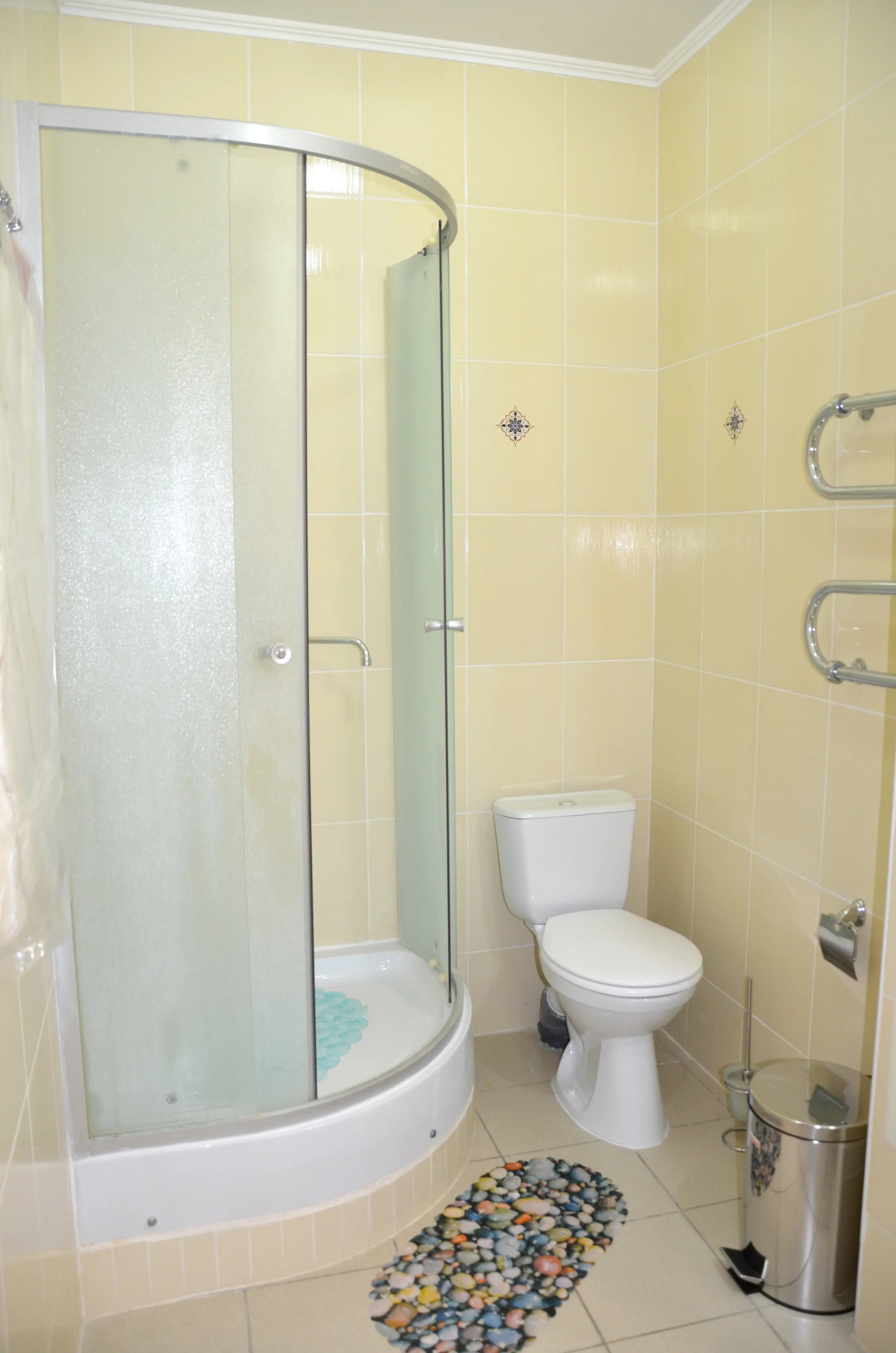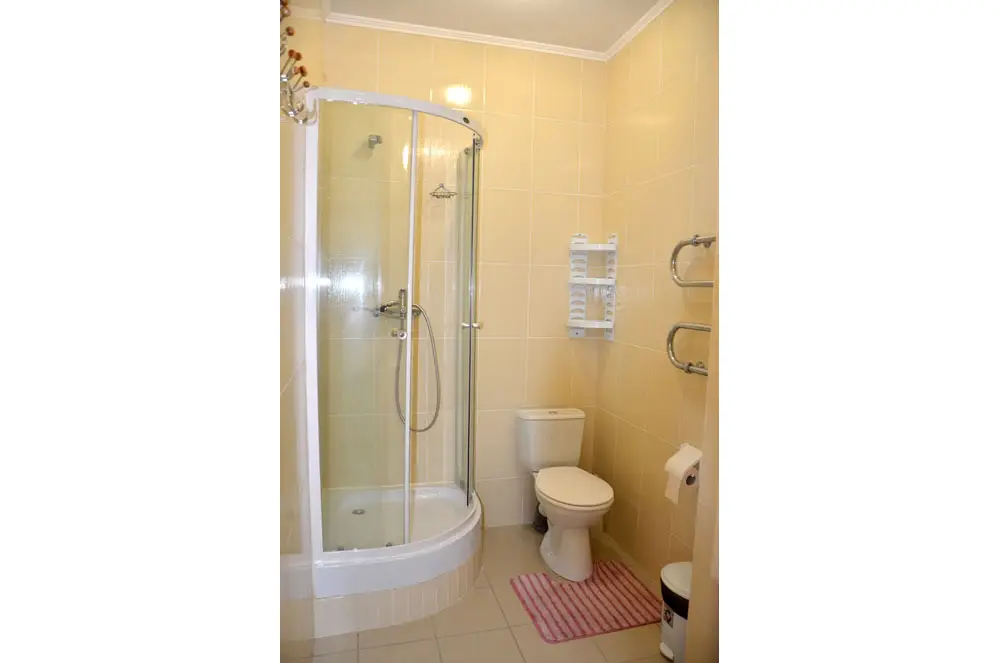 В номере два санузла: в одном ванная, в другом, рядом со спальней – санузел с душевой кабинкой.